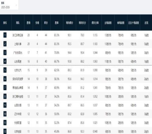 CBA最新排名!广厦上海龙争虎斗,广东被打回原形,辽宁迎难而上