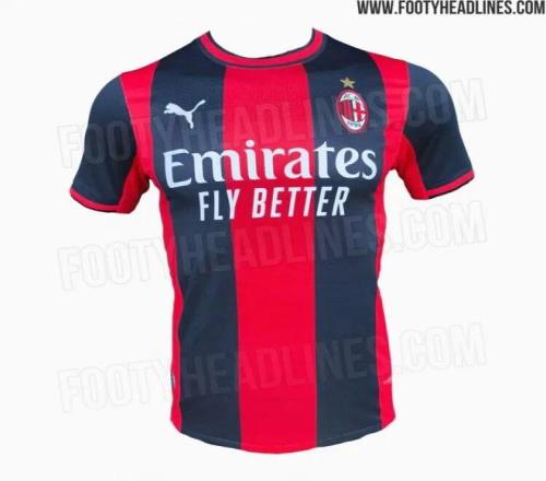 足球装备网站footyheadline曝光AC米兰下赛季主场球衣谍照,采用传统红黑间条衫设计。